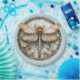 Magnifique carreau de libellule Art Déco, assiettes en papier avec ailes en verre, jolies perles, fleurs en émail blanc et filigrane en feuille d'or. Fond bleu clair pouvant être modifié à votre goût.