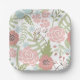 Assiettes En Carton Belle rose pâle et fleurs vertes