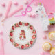 Célébrez avec style cette adorable plaque de papier rond à thème fraise ! L'élégante bordure présente un agencement circulaire de fraises peintes à la main, mêlant baies entières et découpées, feuilles verts délicats et fleurs blanches minuscules. Au centre, un gâteau "A" à la lettre magnifiquement illustrée prend la vedette, décoré de givre rose, de fraises juteuses et d'une bougie d'anniversaire brillante. L'arrière - plan douce aquarelle mêle harmonieusement tons de bleu et rose rose rose, créant une atmosphère festive et charmante. Idéal pour les anniversaires sur le thème de la fraise, les amoureux des fruits et les fêtes d'été. Paire avec invitations assorties et décor de fête pour un look coordonné!