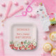 Une plaque en papier Baby shower sucré avec un thème de baies d'été. Cette assiette "Berry Sweet" est composée d'un arrière - plan rose sucré, de fraises et de plantes de fraises en fleurs. Il comprend une police serif élégante pour une touche de charme. Le design est entièrement personnalisable avec les détails de l'événement, ce qui le rend parfait pour un baby shower de printemps ou d'été.