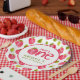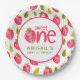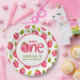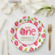 Fraise Berry Premier plat de fête d'anniversaire pour bébé fille en tournant doux ONE. fraises d'aquarelle, accents floraux feuille et blancs. Berry 1er anniversaire fournitures de fête.