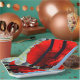 Ces assiettes en papier ont un poisson de betta rouge dessus.