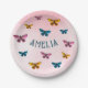 Beurre rose mignon Fille Anniversaire Plaques de papier de fête. Célébrez la journée spéciale de votre petit avec ces plaques d’anniversaire sur le thème des papillons, parfaites pour une fête d’anniversaire de fille! Doté d'un doux dégradé rose arrière - plan, de papillons colorés et d'une pièce centrale personnalisée, cette assiette ajoute une touche magique à toute célébration. Customisez-le avec le nom de votre enfant et rendez votre journée inoubliable !"