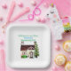 Cette nouvelle assiette en papier pour pendaison de crémaillère représente une charmante maison de dessin animé et un arbre paysager, un buisson et des plantes en pot. Personnalisez cette nouvelle assiette en papier pour la maison avec vos propres mots.