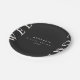 Cette élégante assiette de bienvenue pour une baby shower de mariage noir et taupe présente un design typographique minimaliste et moderne.