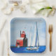 Assiettes En Carton Big Red Michigan Lighthouse and Sailboat