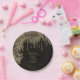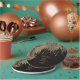 Optez pour un look glamour Old Hollywood en utilisant les pièces de cette suite mariage comme indiqué, avec des bijoux en cascade des feuilles de palmiers incrustés de diamants, ou supprimez les couches de bijoux pour un look légèrement plus conservateur. Cet ensemble présente des feuilles en or chatoyant contre un arrière - plan texturé de la couleur riche du café noir. La plaque en papier mariage montrée ici a une bordure de feuilles étincelants, un message personnel de "Merci" et les noms de la mariée et du marié et la date du mariage. Entrez facilement vos coordonnées en utilisant le modèle fourni. Affichez le lien de collection sur cette page pour voir tous les éléments correspondants dans ce bel ensemble ou recherchez ID830 pour voir d'autres options de couleur pour cette conception.