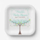 Assiettes En Carton Birds Hearts Tree Blue and Green Baby Shower