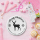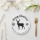 Festive design in classic black and white colors featuring Destei's standing deer silhouette together with snowflakes and two personalizable text areas. The top text reads "Merry Christmas" and on the bottom there is space for a family name or other custom text.