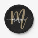 Assiettes En Carton Black Gold Modern Script Girl Monogramme Nom