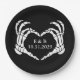 Plaques en papier jetables mariage squelette noir avec un thème "Jusqu'à la mort nous faisons partie". Fournitures idéales pour une fête de mariage, une répétition ou une réception décontractée. Personnalisez l'intérieur du coeur avec les initiales du coupé et la date.