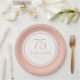 Plaques de papier de base rose et blanc 75ème anniversaire personnalisées avec votre nom, votre âge et votre date de fête.