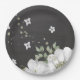 Assiettes En Carton blanc vert fleur feuilles noir