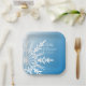 Personnalisez le fabuleux Flambeau de neige Bleu sur Plaques en papier de mariage bleu d'hiver avec les noms de la mariée et du marié et la date de leur hiver Décembre, Janvier ou Février merveilleuse thème de la douche ou mariage nuptiale. Ces élégantes plaques en papier jetable d'hiver personnalisées présentent un design complexe de flocon blanc avec un arrière - plan bleu dégradé.