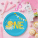 Bleu Aquarelle Caoutchouc Oh Quel plaisir d'être un 1er Anniversaire Plaques de papier. Jaune et Bleu