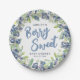 Poêle à Baby shower doux Berry Plaque en papier. Ajoutez une touche charmant et pratique à votre baby shower avec cette plaque de papier sucré aux baies, avec une belle bordure de bleuets aquarelles et de feuilles verts. Parfait pour un baby shower garçon mais assez doux pour une fille, ce design apporte une touche fraîche et élégante à la table. Le centre est composé d'un script d'écriture manuscrite audacieux et d'une police simple en bleu et bleu marine. Entièrement personnalisable : mettez à jour le texte, les couleurs et l'arrière - plan pour qu'il corresponde à votre thème. Idéal pour servir des friandises tout en ajoutant un détail élégant à votre célébration!