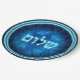 Un design élégant avec un texte hébreu bleu et blanc brillant, "Shalom" (ש ל ם - paix) superposé sur une image fractale bleue, à l'aspect gravé d'une Étoile de David.