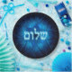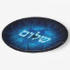 Un design élégant avec un texte hébreu bleu et blanc brillant, "Shalom" (ש ל ם - paix) superposé sur une image fractale bleue, à l'aspect gravé d'une Étoile de David.