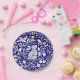 Vos invités apprécieront ces assiettes à votre brunch de Pâques, à votre fête ou à votre chasse aux oeufs ! Dans un beau bleu foncé et blanc, un mignon lapin assis est entouré d'oiseaux et d'un cadre boisé stylisé, rempli de feuilles, de fleurs, de baies et de vignes tourbillonnantes. L'oeuvre s'inspire de motifs et de couleurs de poteries anciennes Delft, Dedham et Chinoiserie orientale. Parfait pour un usage quotidien dans votre décor bleu et blanc, ou pour toute occasion spéciale comme une fête de jardin. OEuvre d'art et de design original, unique et fantastique de Tuzi Williams. Vendu uniquement par Zazzle, avec une garantie de 100% client.