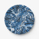 Assiettes En Carton Bleu Denim Moyen Feuilles de Palmier Tropicales Ma