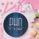 Plaques de fin de doctorat avec un schéma de couleurs bleu et blanc. customisez simplement le nom du diplômé, ajoutez ces assiettes à votre panier et célébrez cette réussite majeure.
