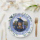 Cette plaque de papier présente votre photo de graduation entourée de fleurs bleues. Un cadre bleu solide présente votre année de graduation et votre nom.