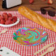 Assiettes En Carton Bleu, orange et rose chaud Super Abstrait Rétro