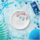 Assiettes En Carton Bleu poussiéreux Fleurs roses Élégant Romantique