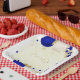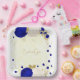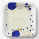Assiettes En Carton bleu royal et fleurs blanches or