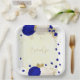 Romantique bleu royal & fleurs blanches avec plaque de papier mariage botanique feuille or.