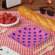 Assiettes En Carton Bleu sur rose Pois design Motif