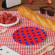 Assiettes En Carton Bleu sur rouge Pois design Motif