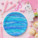 Plaques en papier bleu, turquoise et violet pour un anniversaire ou un baby shower.
