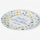 This beautiful and elegant plate features watercolor blue, yellow and white flowers with foliage. The text combines handwritten script and serif fonts for a stylish and modern look. This is perfect for a spring or summer rustic birthday party.