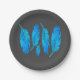 Pretty blue boho feather design of blue watercolor feathers against a dark gray background. Beautiful deep blue design with a boho vibe.