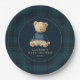 Assiettes En Carton Blue Green Tartan Polo Bear Baby Shower