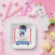 Blue Owl Kindergarten Graduation est un design simple et amusant avec une chouette bleue dans une casquette de graduation, avec un diplôme. L'arrière - plan est un confetti coloré. Ces plaques papier peuvent être customisées avec votre propre texte.