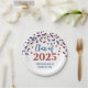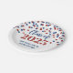 Classe graduation personnalisable de 2025 assiettes en glamour rouge et bleu confetti motif et élégant texte en lettres de style.