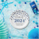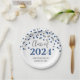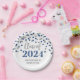 Classe graduation personnalisable de 2024 assiettes en argent glamour et bleu confetti motif et élégant texte de style lettré main.