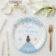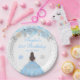 Cette assiette élégante et glamour présente une belle princesse aux cheveux brunes et à la peau claire en robe bleue. Le texte combine écriture manuscrite et polices sans serif modernes pour un look élégant et sophistiqué. Les compositions florales, les flocons de neige et les confettis argentés créent un mélange parfait de rustique et de chic. Parfait pour une fête d'anniversaire à thème en hiver. Graphiques par www.etsy.com/uk/shop/SunflowerDayLove