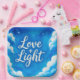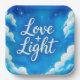 Ces assiettes fantaisistes sont ornées d'un ciel bleu et nuageux avec le NewAge commun saluant Love + Light.