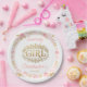 Blush pink and gold floral baby shower paper plates for a girl baby shower. Elegant floral disposable plates perfect for dessert tables and party decor. 🌸