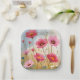Blushing Blooms | Pink Flower Meadow Botanical Floral Field Watercolor Painting Paper Plates