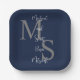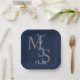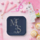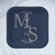 Quelle merveilleuse plaque de papier personnalisée pour une réception de B'nai (Bnai) Mitzvah Party. Arrière - plan bleu marine, monogramme gris, nom blanc. Choisissez carré ou rond. Tous droits réservés © 2024 Alan & Marcia Socolik.