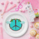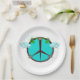 Serve up your snacks and party treats with a touch of groovy style using these disposable Paper Plates featuring the Winged Peace Symbol design. The vibrant aqua peace sign, accented with cheerful wings and colorful floral elements, is perfect for adding a bohemian, retro flair to any celebration. Ideal for birthday parties, hippie-themed events, outdoor picnics, or casual gatherings. These sturdy, themed paper plates make cleanup easy while bringing a fun and peaceful aesthetic to your table setting.