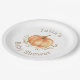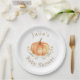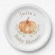 Cette plaque en papier baby shower de saumons comporte un citrouille d'aquarelle et un feuillage d'automne.