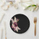 Plaque de papier Mariage Floral Boho noir - présente des roses beige crème et rose bordeaux avec feuilles beige sec et brindilles bordeaux sur l'arrière - plan noir.