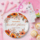 Cette étonnante plaque en papier présente une bordure luxuriante de riches pavots orange et rouge profond, leurs pétales se déroulant comme des murmures au coucher du soleil. Des grappes de baies rouges rubis et des feuillages d'automne délicats sont astucieusement entremêlés, créant un cadre pittoresque qui évoque un rêve de récolte rustique et cosy. C'est plus qu'une simple assiette, c'est un chef-d'oeuvre miniature prêt à élever votre célébration. Par-dessus tout, le nom et la date de l'événement de la mariée sont entièrement personnalisables, vous permettant de personnaliser ce design unique sans effort.