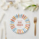 Bienvenue votre petit rayon de soleil avec cette plaque de papier Baby shower neutre genre Boho Sunshine avec un adorable soleil jaune, or, orange, bleu et pêche.