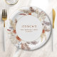 Plaques de papier Boho anniversaire en terre cuite brûlée orange et blanc. Beau design moderne aux accents botaniques peints à la main. On y trouve de l'herbe à la pampa, des feuilles de bananes séchées et des roses. Thème du désert bohème tendance, parfait pour l'automne, l'hiver, le printemps ou l'été. Parfait pour une célébration anniversaire élégante.